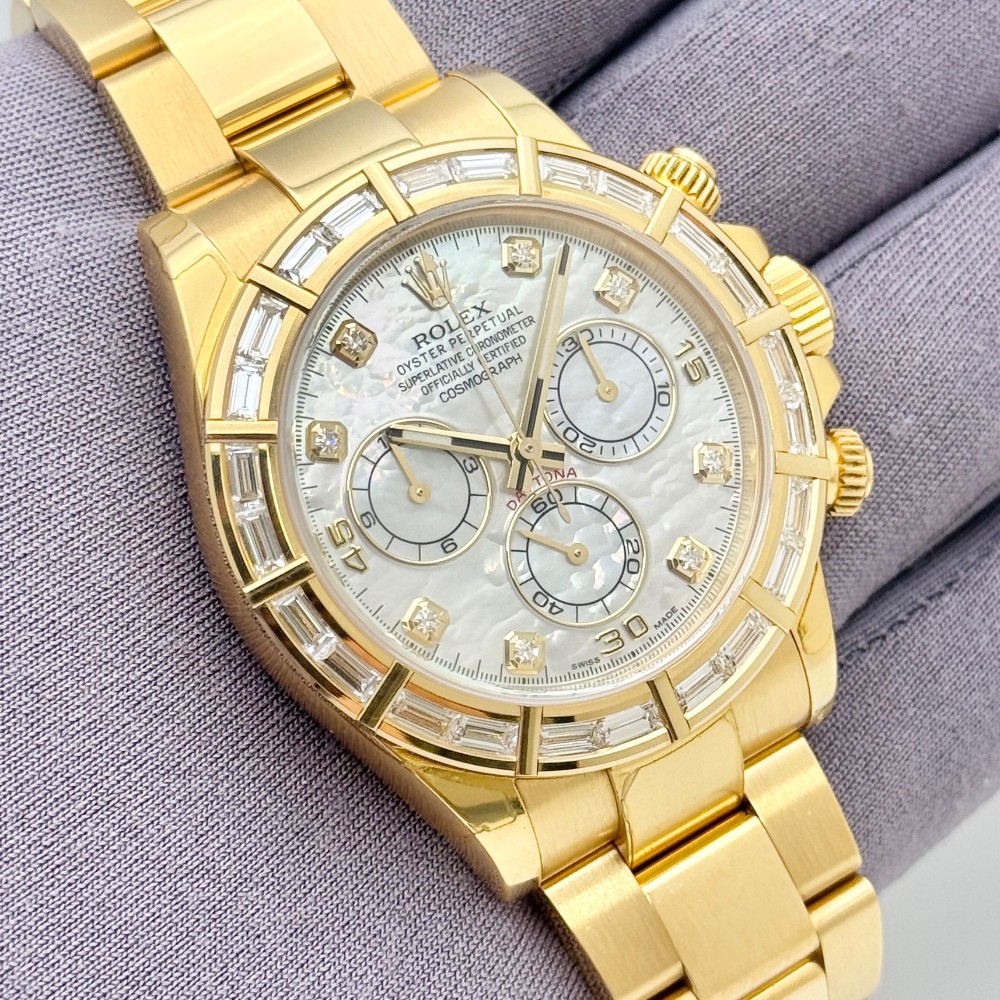 SCRAMBLED SERIAL, WHITE MOP DIAMOND BAGUETTE BEZEL